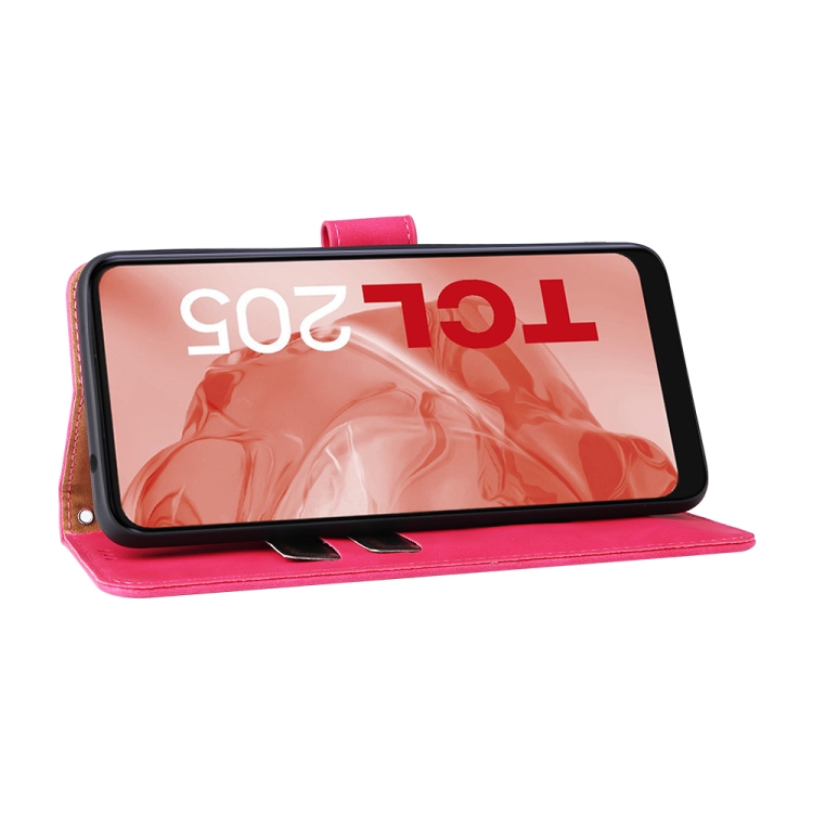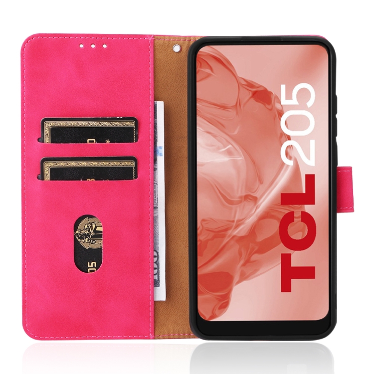 Funda Telefónica para TCL 205 Piel con Hebilla Magnética de Cuero (Rose Rojo)