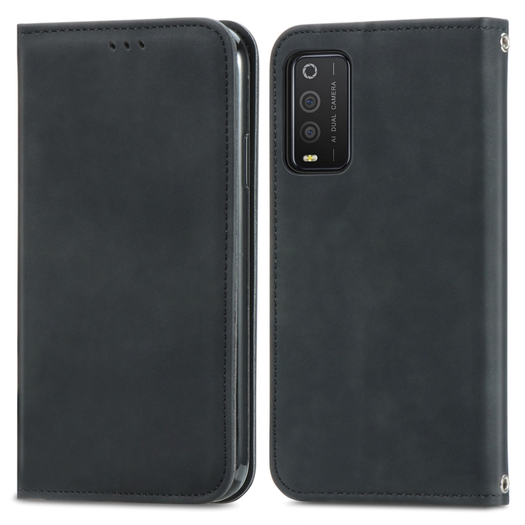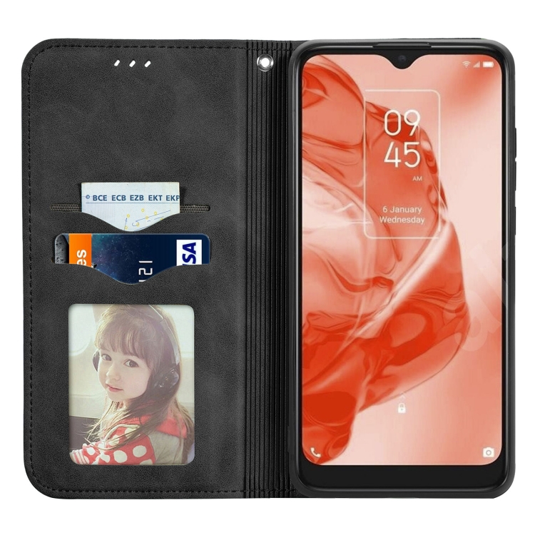 Funda Telefónica TCL 205 Retro Piel Magnética Horizontal Flip Cuero (Negro)