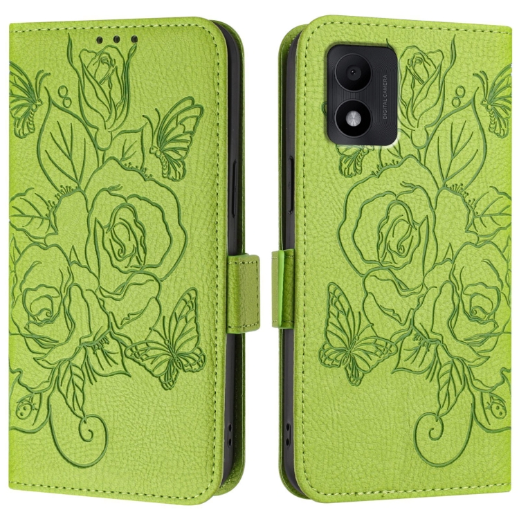 Funda de Cuero Antirrobo RFID para TCL 303 con Rosa en Relieve (Verde)