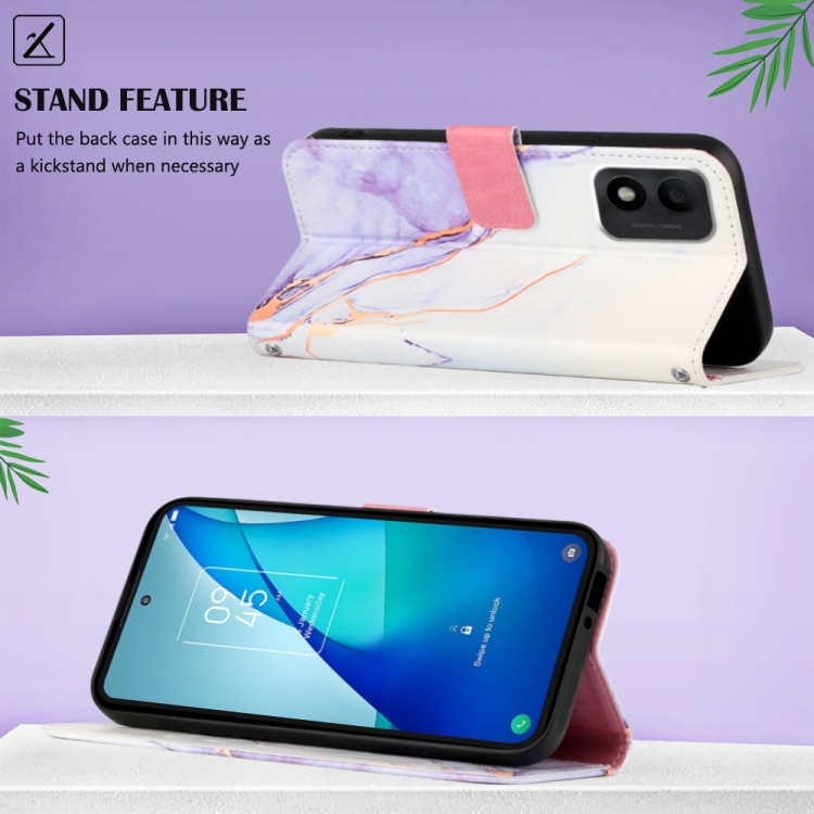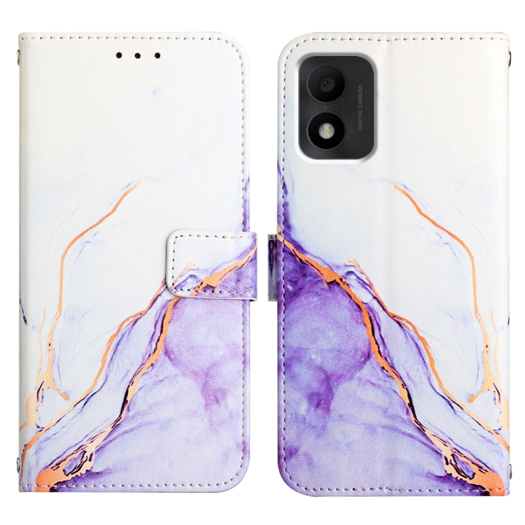 Funda de teléfono TCL 303 Pt003 con tapa de cuero y patrón de mármol (Blanco Púrpura)