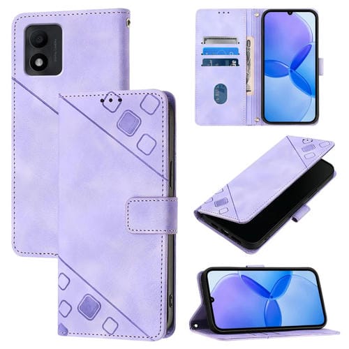 Funda de Cuero para TCL 303 Skin Feel en Relieve (Púrpura Claro)