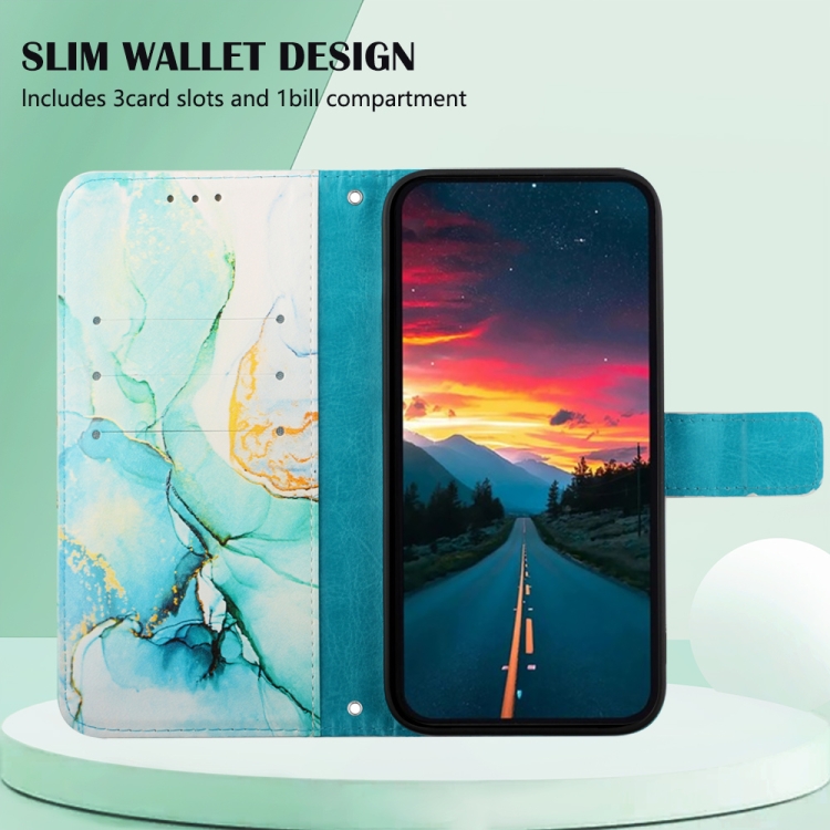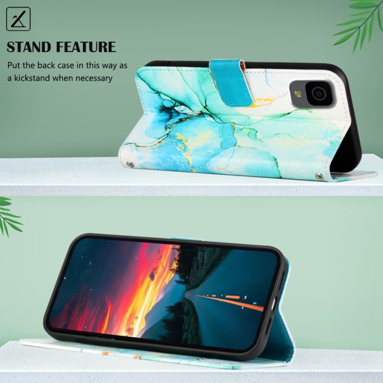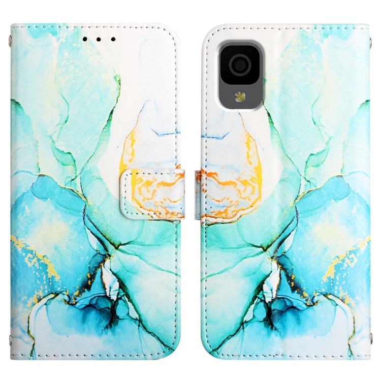 Funda de Teléfono TCL 30Z T602Dl Pt003 con Tapa de Cuero y Patrón de Mármol (Verde)