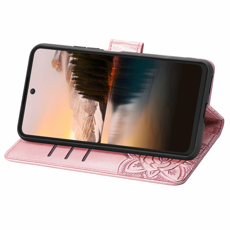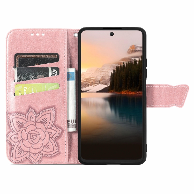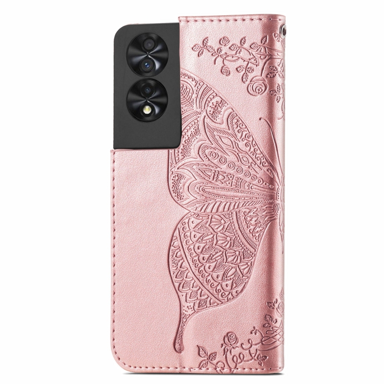 Funda de Cuero para TCL 40 Nxtpaper 4G Butterfly Love Flower en Relieve (Oro Rosa)