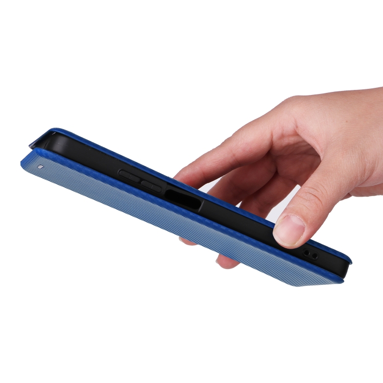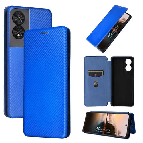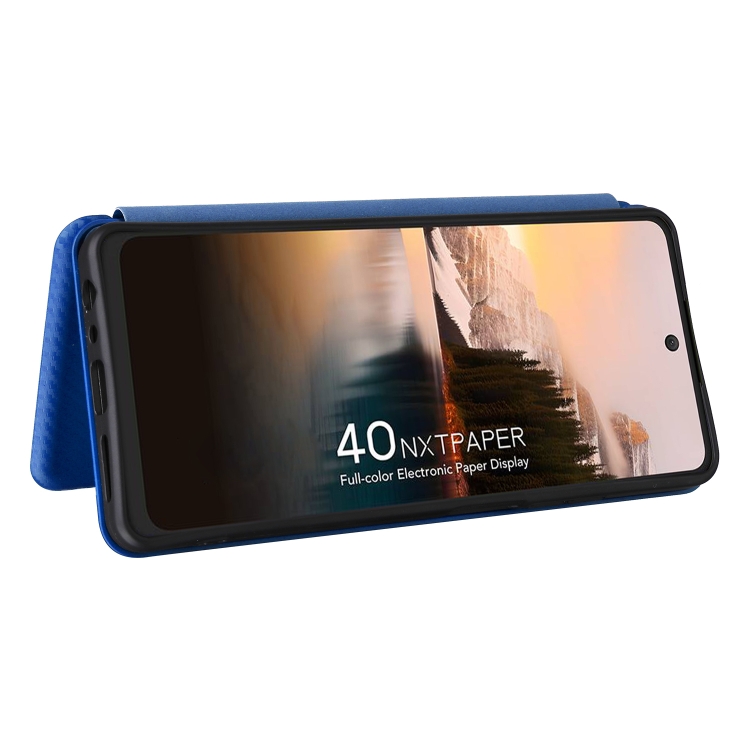 Funda de Cuero para TCL 40 Nxtpaper 4G con Tapa y Textura de Fibra de Carbono (Azul)