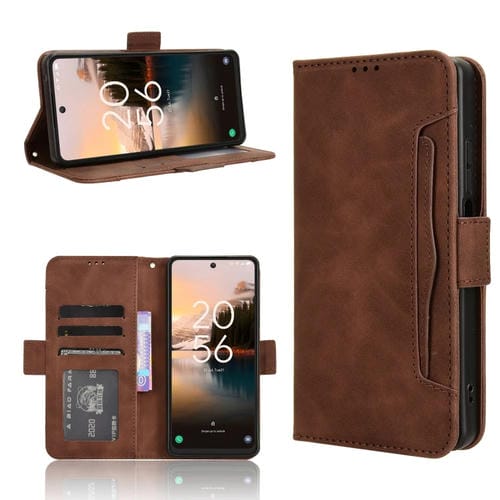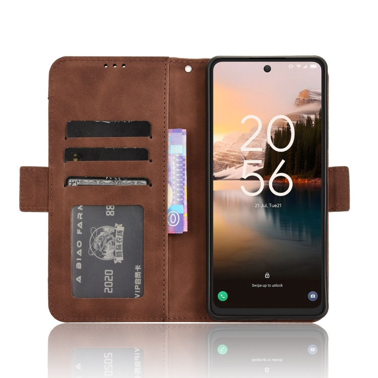Funda de cuero para teléfono TCL 40 Nxtpaper 4G con textura becerro y ranuras para tarjetas (Marrón)