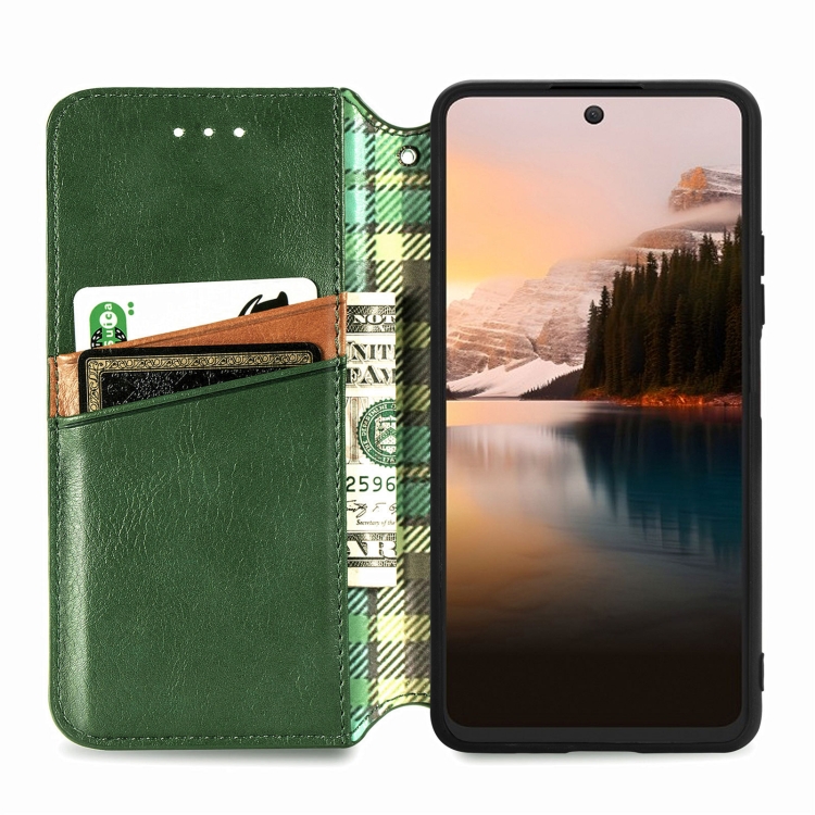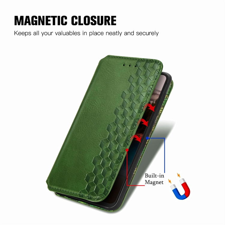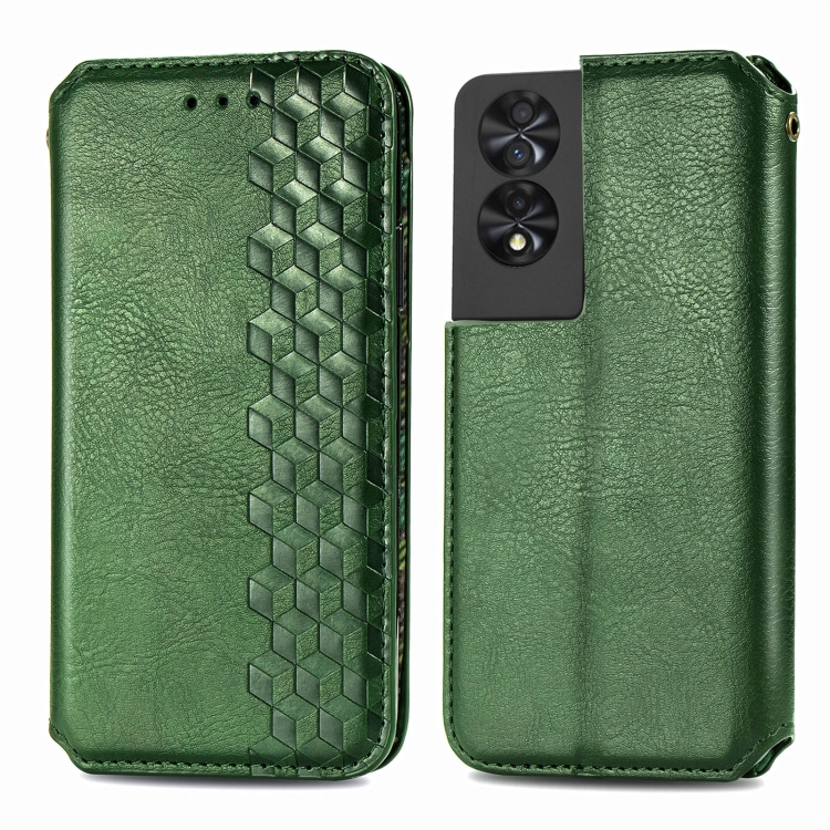 Funda de Cuero Magnético para TCL 40 Nxtpaper 5G Cubic Grid (Verde)