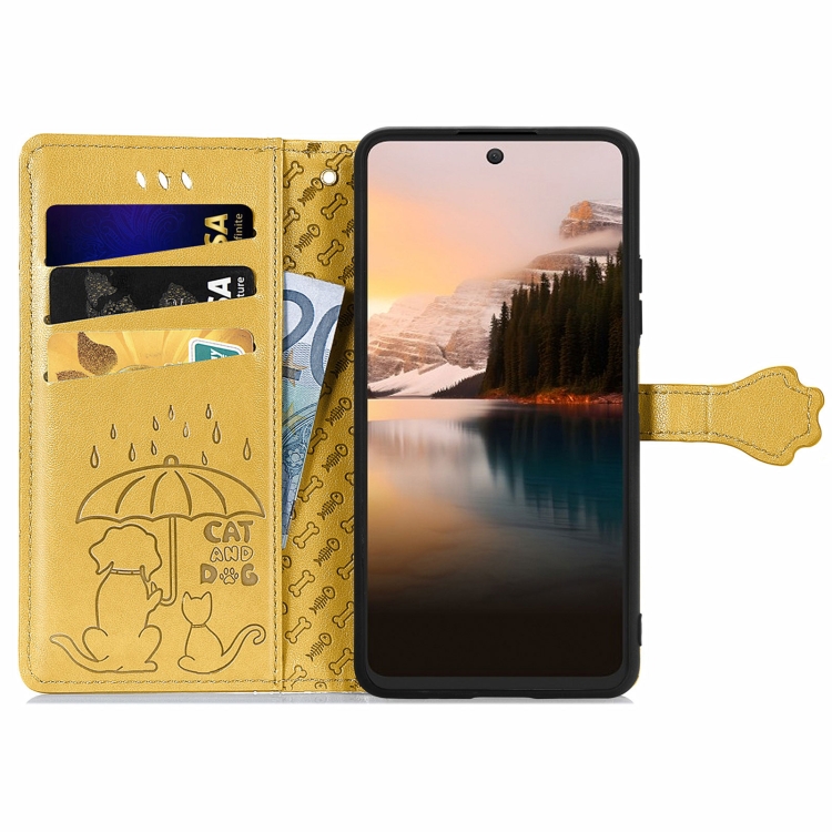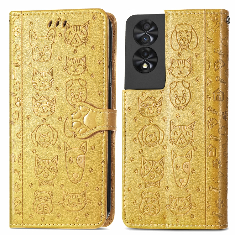 Funda para TCL 40 Nxtpaper 5G de Cuero con Relieve Perros y Gatos (Amarillo)