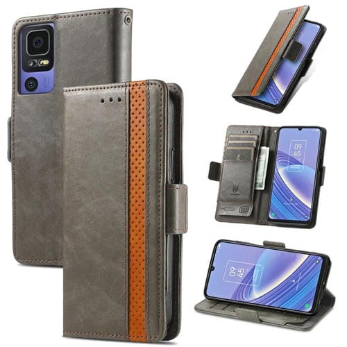 Funda de Cuero para TCL 40 Se Caseneo Splicing Dual con Hebilla Magnética (Gris)