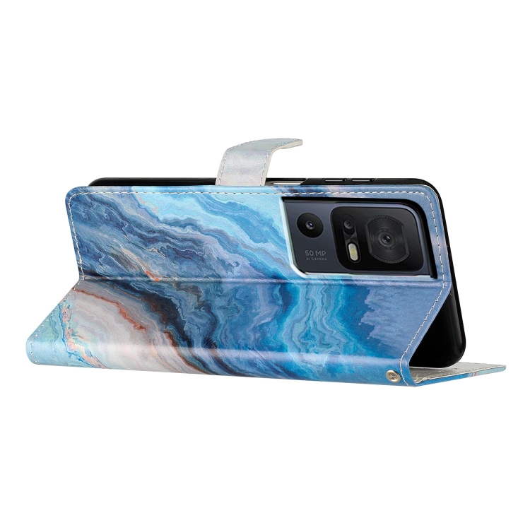 Funda de Cuero para TCL 40 Se con Dibujo Coloreado Mármol Azul