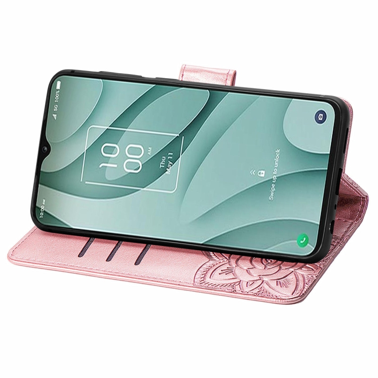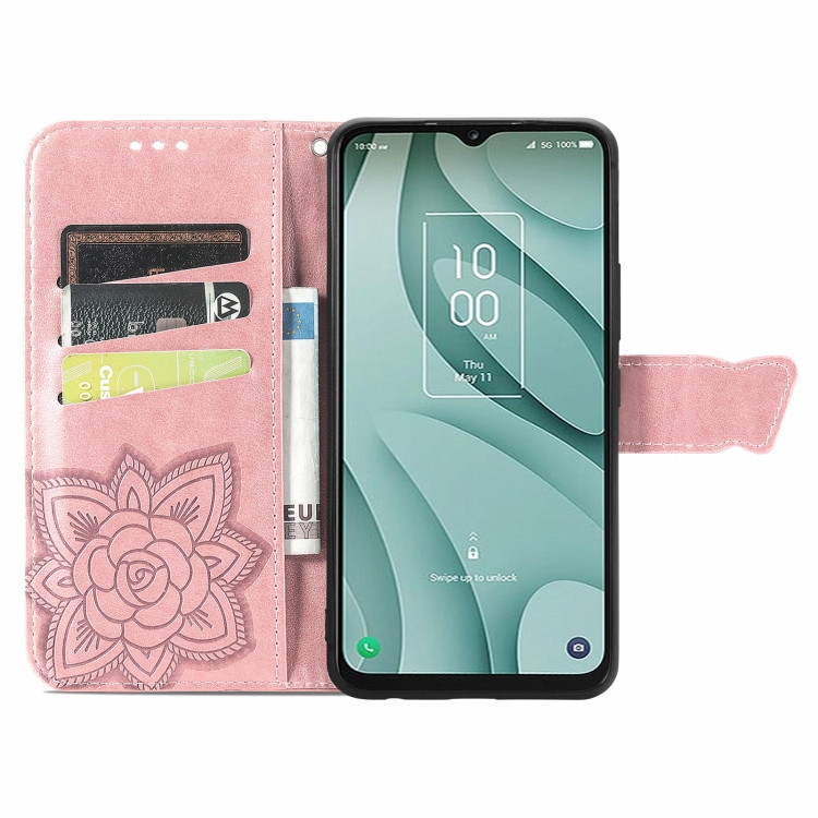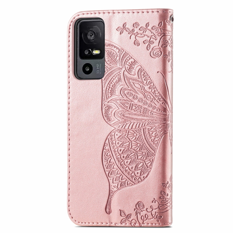 Funda de Cuero para TCL 40 Xe Butterfly Love Flower en Relieve (Oro Rosa)