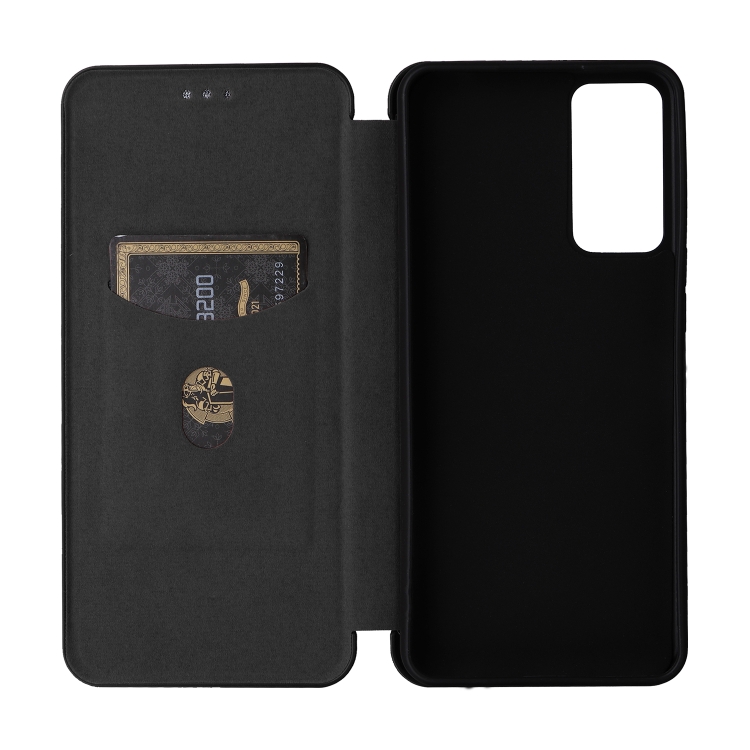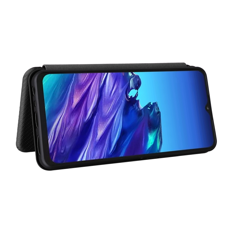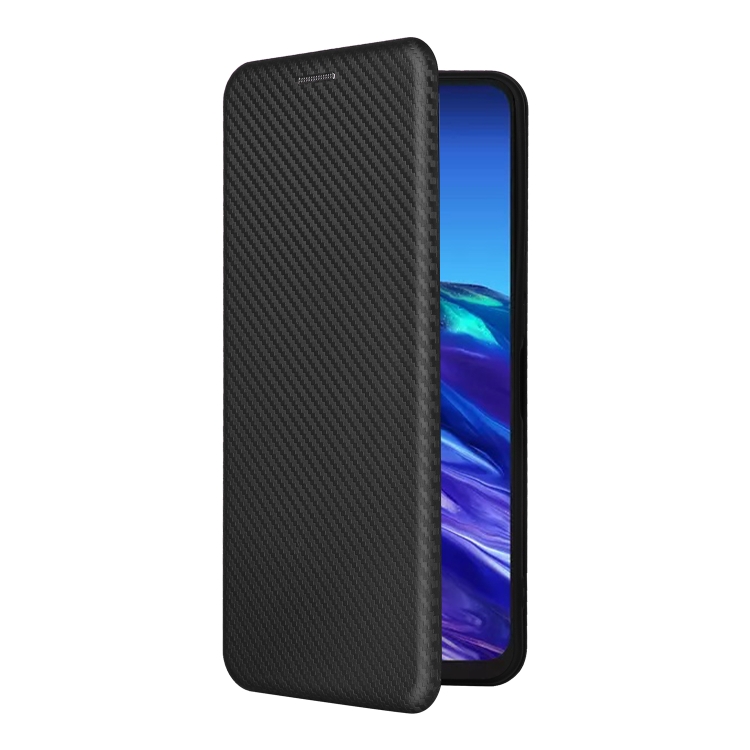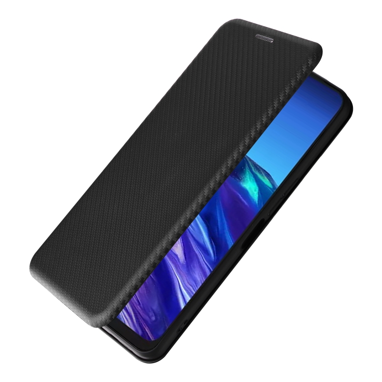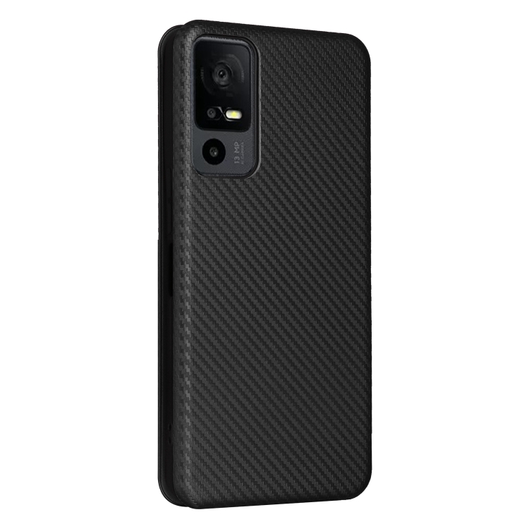 Funda de Cuero para TCL 40 XL con Tapa y Textura de Fibra de Carbono (Negro)