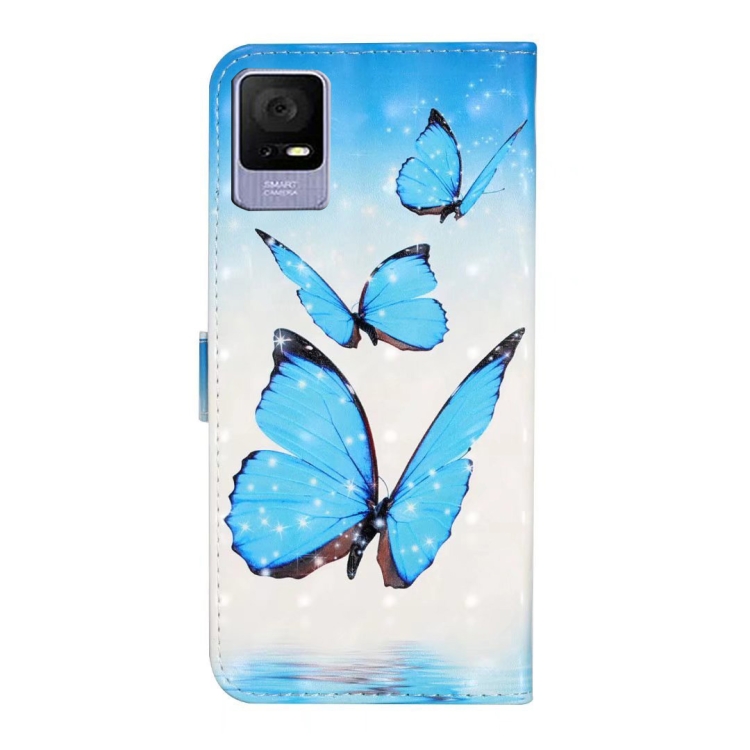 Funda de Cuero para TCL 405/406 con Dibujo 3D en Relieve al Óleo (3 Mariposas)