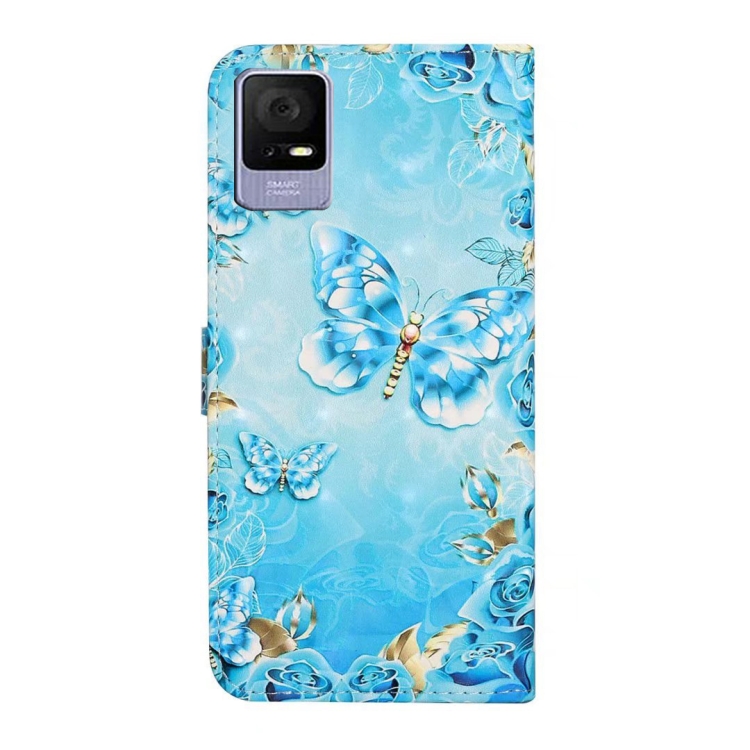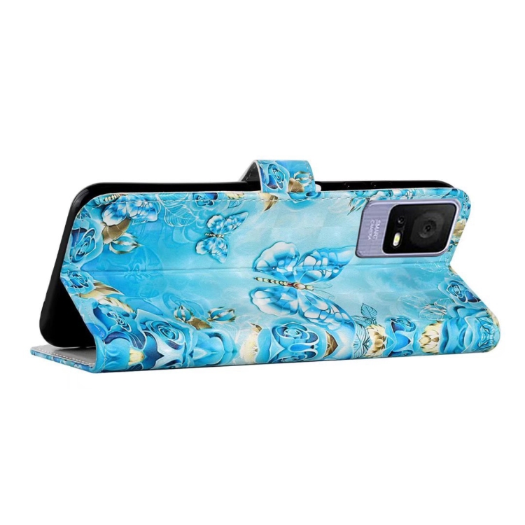 Funda de Cuero para TCL 405/406 con Dibujo 3D en Relieve al Óleo (Mariposas Azules)