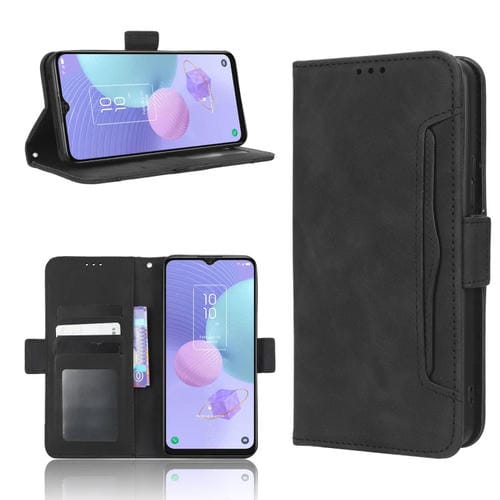 Funda de Cuero para Teléfono TCL 405 / 406 T506D con Textura Becerro y Ranuras para Tarjetas (Negro)