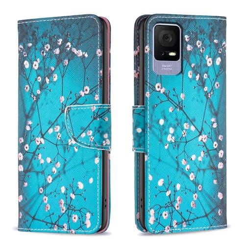 Funda de Cuero para TCL 405 con Patrón de Dibujo Flor de Ciruelo (Colores)