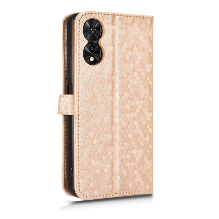 Funda de Cuero para TCL 50 5G con Textura de Punto de Panal (Dorado)