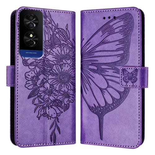 Funda de Cuero para TCL 50 5G con Mariposa en Relieve (Púrpura Claro)