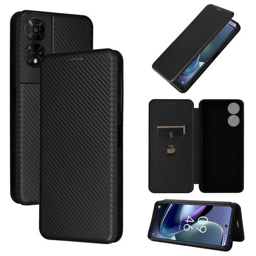 Funda de Cuero para TCL 50 5G con Tapa y Textura de Fibra de Carbono (Negro)