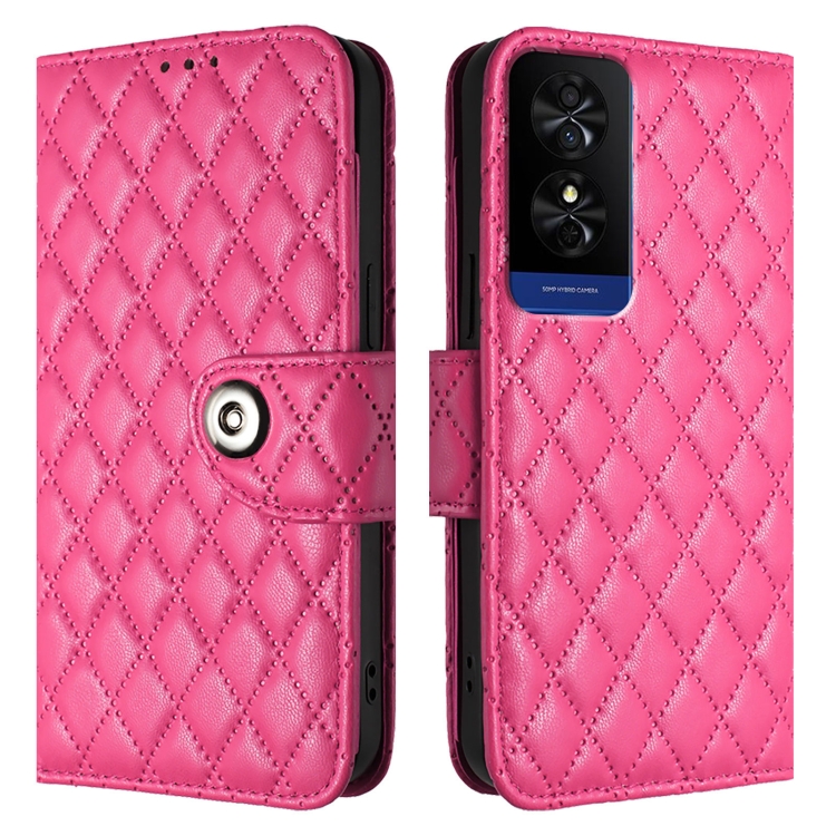 Funda para TCL 50 5G de Cuero con Tapa Textura Romboidal y Cordón (Rojo Rosa)