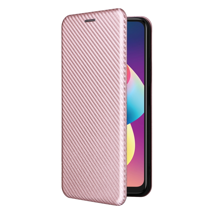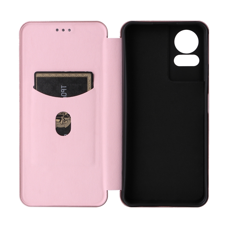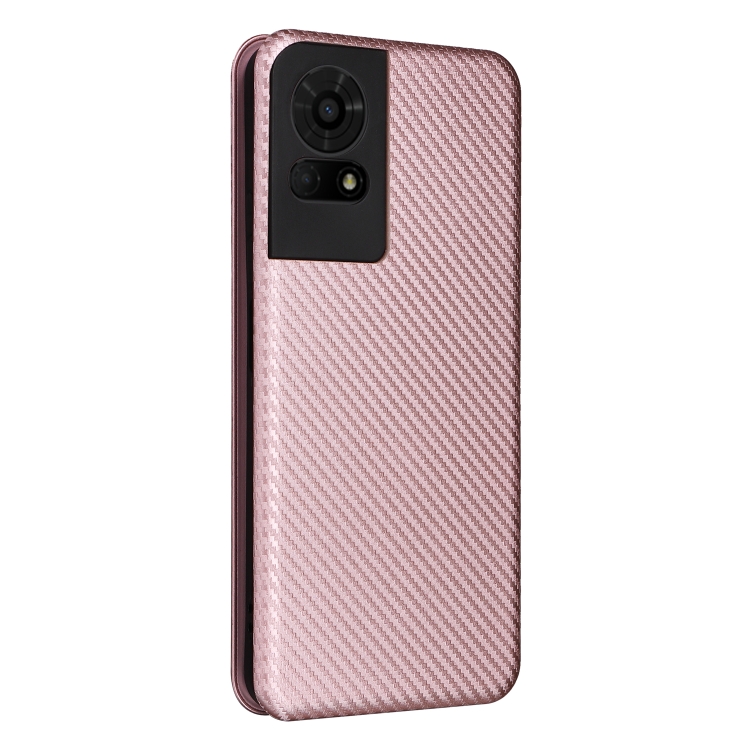Funda para TCL 50 Le 5G de Cuero con Tapa y Textura de Fibra de Carbono (Rosa)