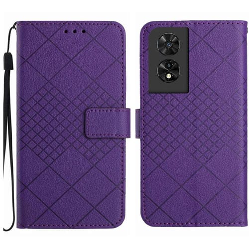 Funda de Cuero para TCL 50 Se / 40 Nxtpaper 4G con Textura de Rejilla Rómbica (Púrpura)