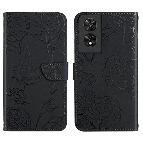 Funda de Cuero para TCL 50 SE / 40 Nxtpaper 4G HT03 Skin Feel Butterfly con Tapa en Relieve (Negro)