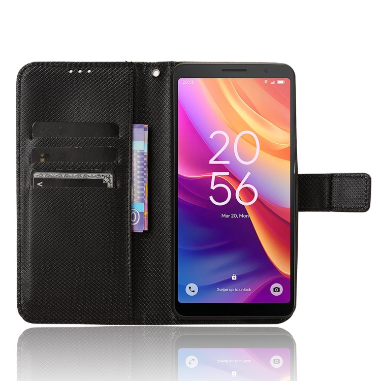 Funda de Cuero para TCL 501 4G con Textura de Diamante (Negro)