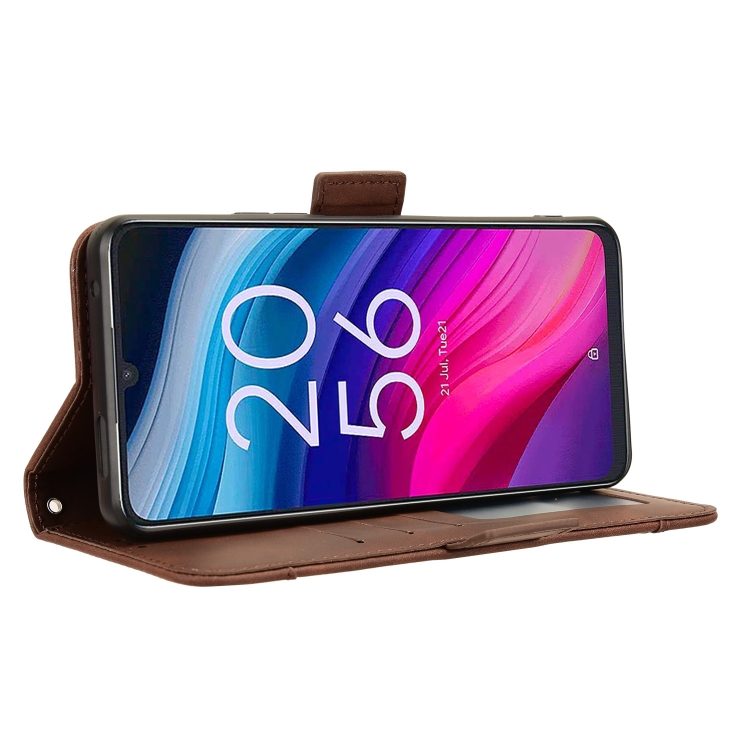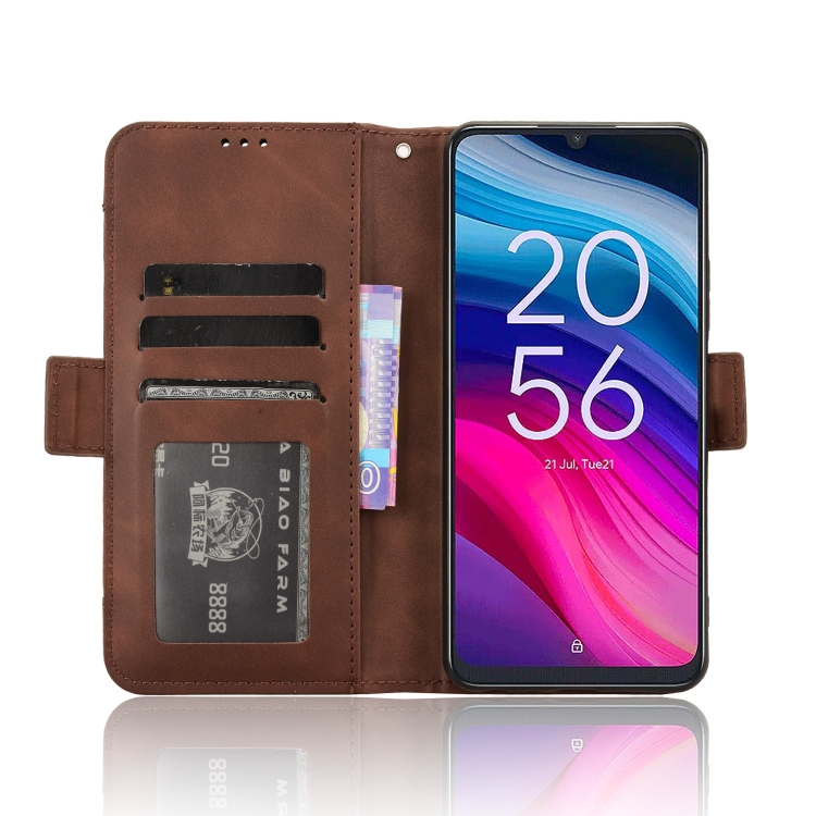 Funda de Cuero para TCL 505 4G con Textura Becerro y Ranuras para Tarjetas (Marrón)