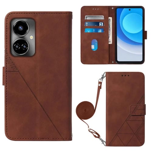 Funda Flip de Cuero para Tecno Camon 19 Crossbody 3D en Relieve (Marrón)