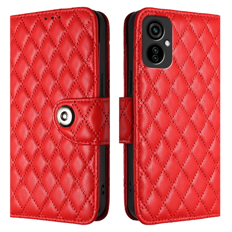 Funda de Cuero para Tecno Camon 19 Neo con Tapa Textura Rombal y Cordón (Rojo)