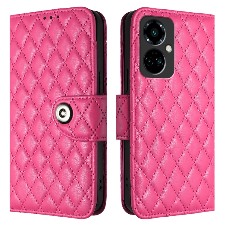 Funda para Tecno Camon 19 Pro 5G de Cuero con Tapa Textura Romboidal y Cordón (Rojo Rosa)