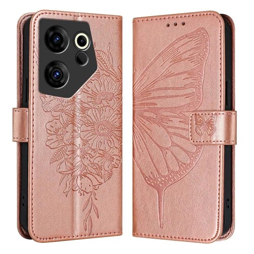 Funda de Cuero para Tecno Camon 20 Premier 5G con Mariposa en Relieve (Oro Rosa)