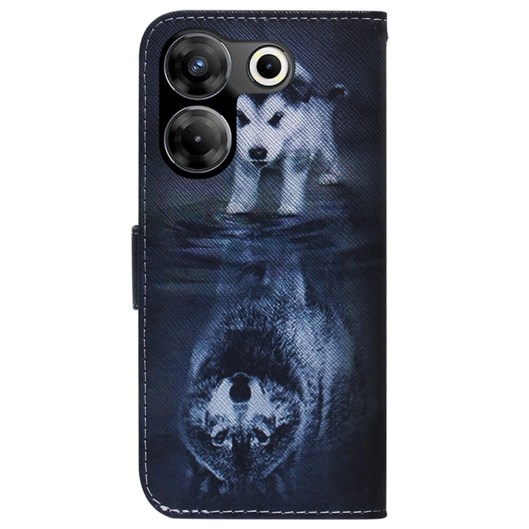 Estuche de Cuero para Tecno Camon 20 Pro 4G y 20 con Tapa Dibujo a Color (Lobo y Perro)