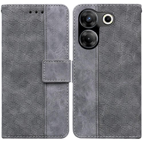Funda de Cuero para Tecno Camon 20 Pro 5G con Relieve Geométrico (Gris)