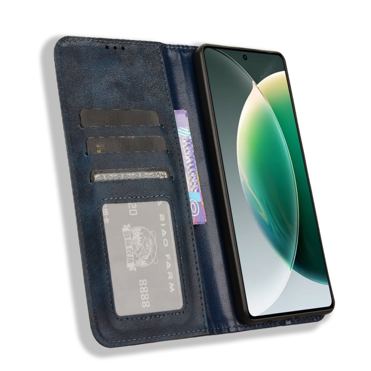 Funda para Tecno Camon 30 5G / 4G de Cuero con Textura Retro y Hebilla Magnética (Azul)