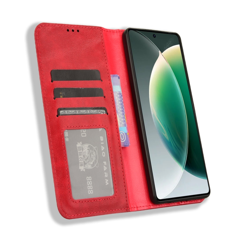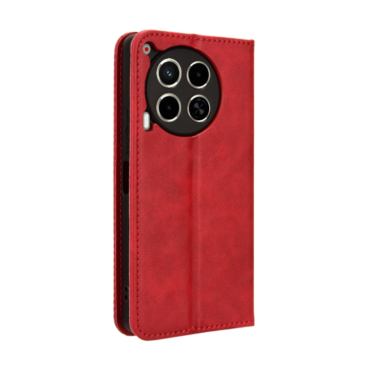 Funda para Tecno Camon 30 5G / 4G Cuero Textura Retro con Hebilla Magnética (Rojo)