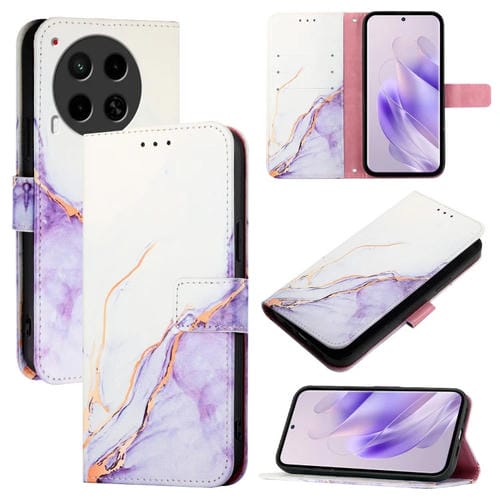 Funda de Cuero con Tapa para Tecno Camon 30 5G / 4G Pt003 con Patrón Mármol (Blanco Púrpura)