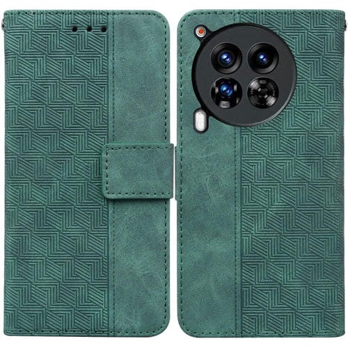 Funda de Cuero para Tecno Camon 30 Premier 5G con Relieve Geométrico (Verde)