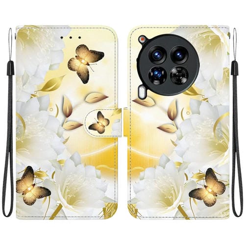 Funda de Cuero Tecno Camon 30 Premier 5G con Dibujo Coloreado y Textura de Cristal (Epiphyllum Mariposa Dorada)