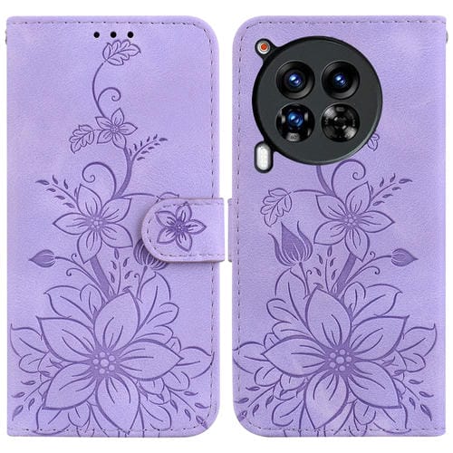 Funda para Tecno Camon 30 Premier 5G Lily de Cuero En Relieve (Púrpura)
