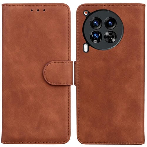 Funda de Cuero con Tapa para Tecno Camon 30 Premier 5G Skin Feel Pure Color (Marrón)