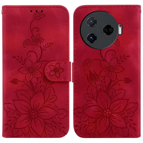Funda para Tecno Camon 30 Pro 5G Cl8 Lily Cuero En Relieve (Rojo)