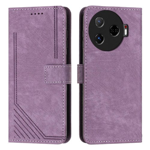 Funda de Cuero para Tecno Camon 30 Pro 5G con Patrón de Rayas y Cordón Largo (Púrpura)