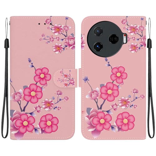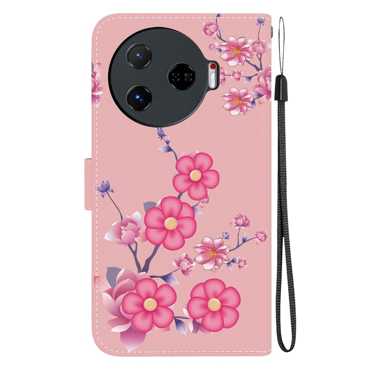 Funda de Cuero para Tecno Camon 30 Pro Cl8 con Dibujo Coloreado y Textura de Cristal (Flores de Cerezo)