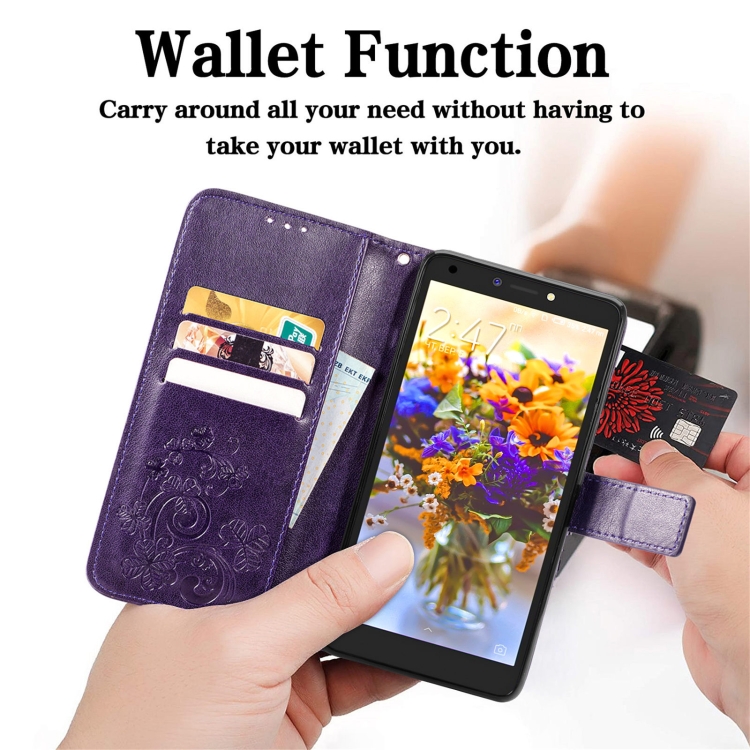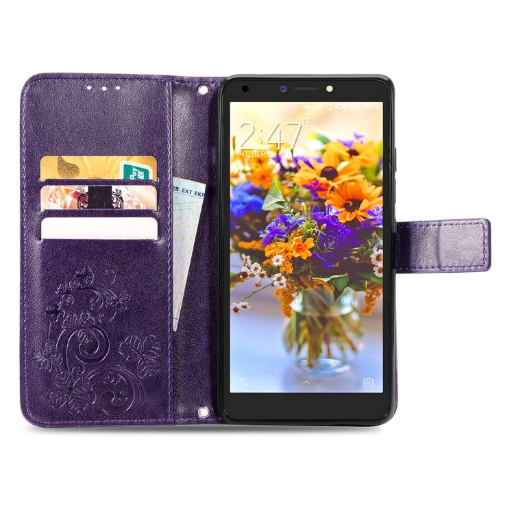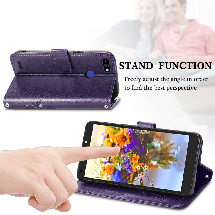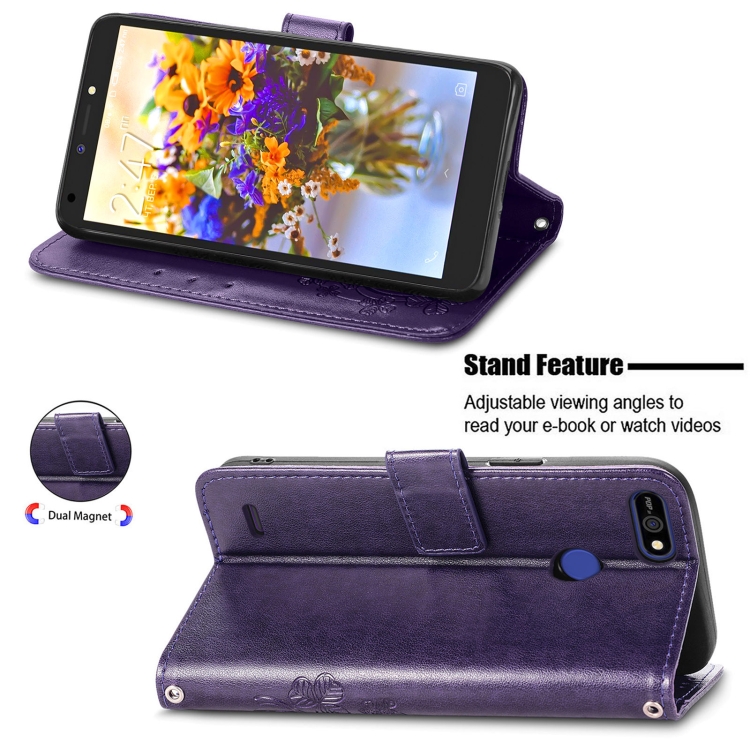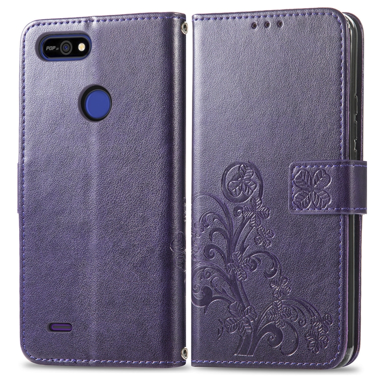 Funda para Tecno Pop 2F Cierre Cuatro Hojas con Hebilla, Ranura para Tarjetas y Soporte (Púrpura)