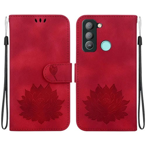 Funda de Cuero para Tecno Pop 5 LTE con Relieve Lotus (Rojo)