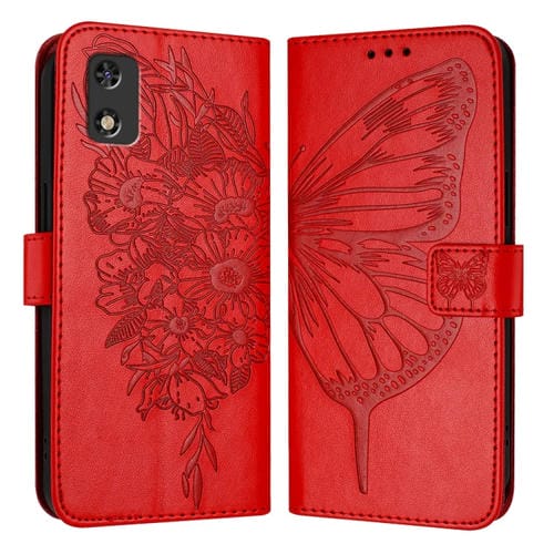 Funda para Teléfono Cuero Tecno Pop 5C Itel A23 Pro A17 Mariposa En Relieve (Rojo)