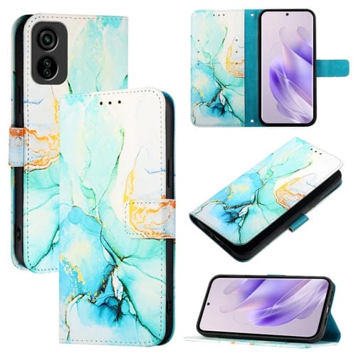 Funda de Cuero para Tecno Pop 6C y Itel A18 Pt003 con Tapa y Patrón de Mármol (Verde)