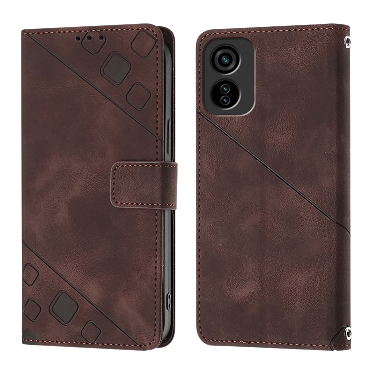 Funda de Cuero para Tecno Pop 6C Skin Feel en Relieve (Marrón)