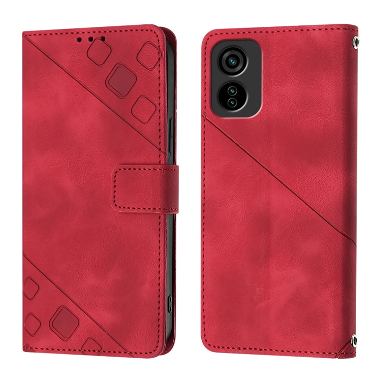 Funda de Cuero para Tecno Pop 6C Skin Feel En Relieve (Rojo)